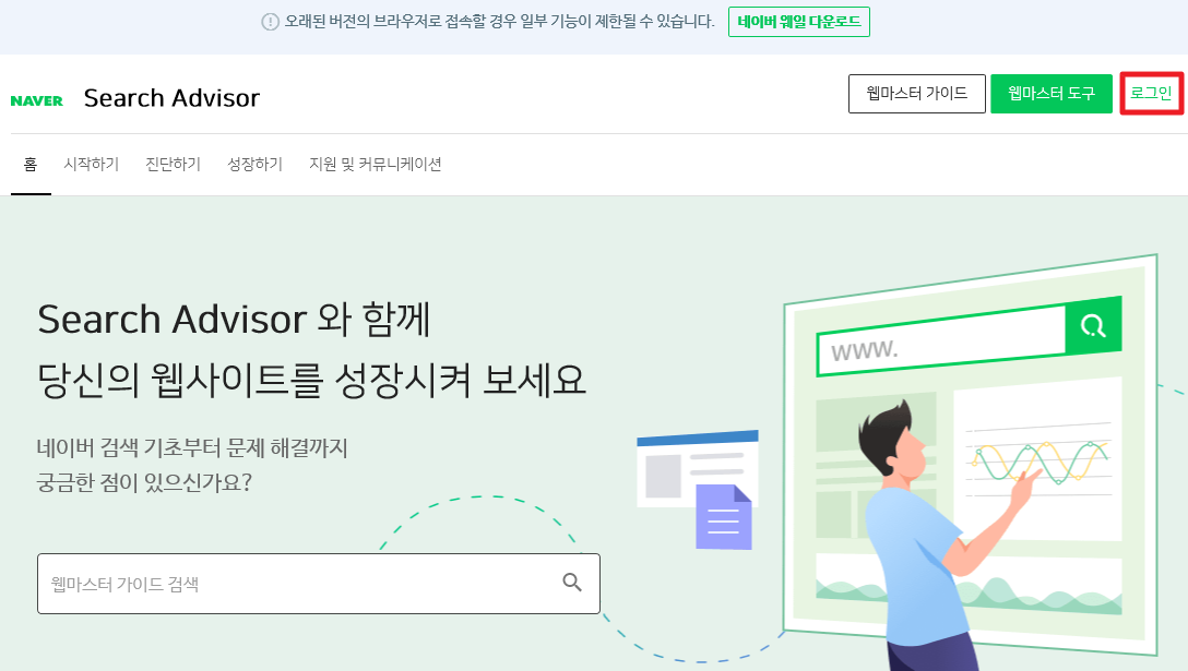 네이버 로그인으로 searchadvisor 서비스를 이용할 수 있답니다.