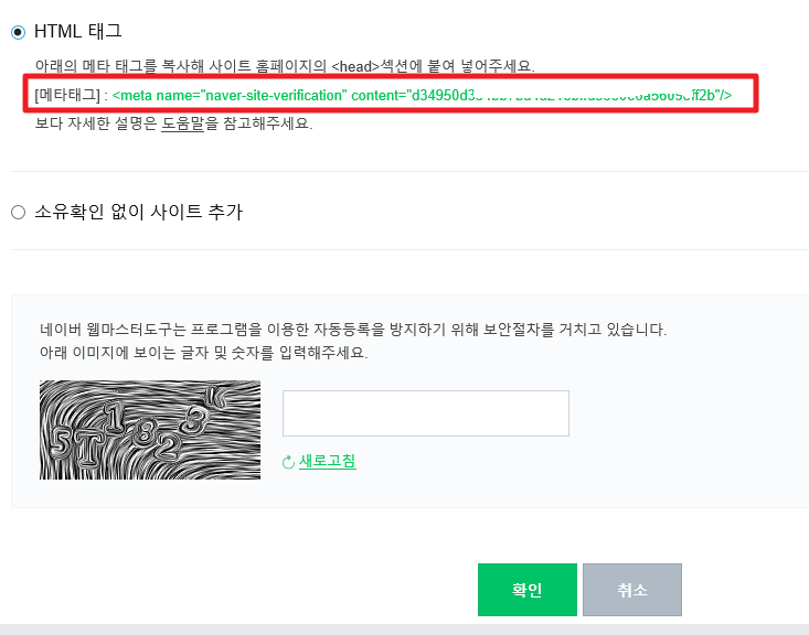이렇게 네이버웹마스터도구에서는 3가지 방법으로 소유확인을 해 주는데요.