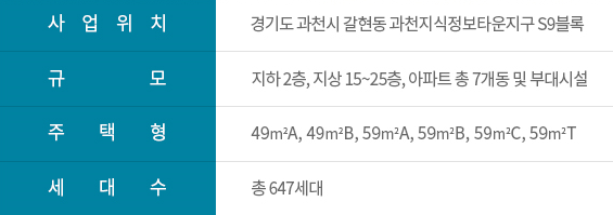 과천제이드자이는 지하 2층·지상 25층, 7개동 전용면적 49~59㎡, 총 647가구로 조성됩니다.