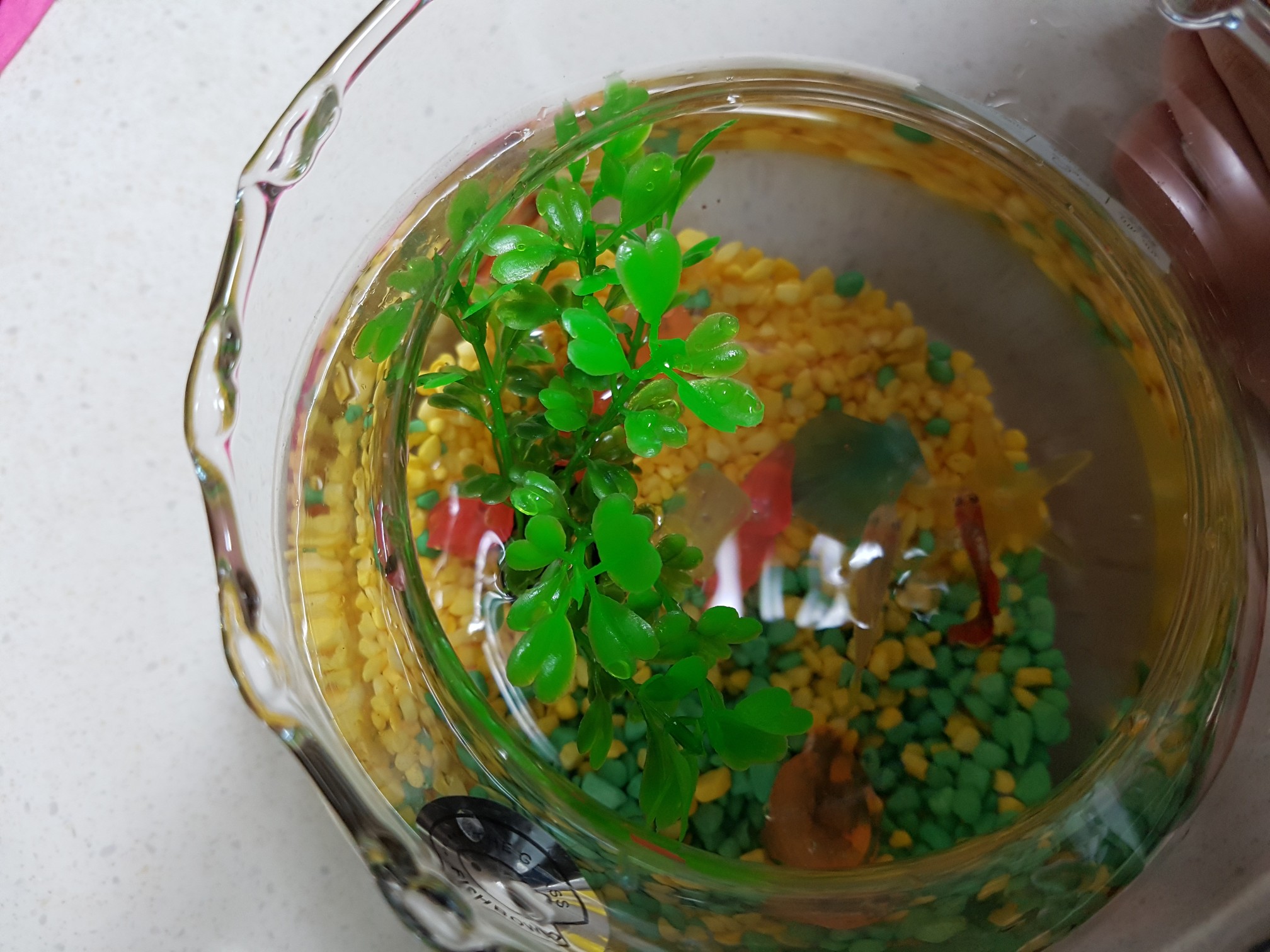 그리고 다이소에서 어항용수초와 칼라스톤, 야광돌로 어항을 예쁘게 디자인하려고 간단하게 구매를 하였지요.