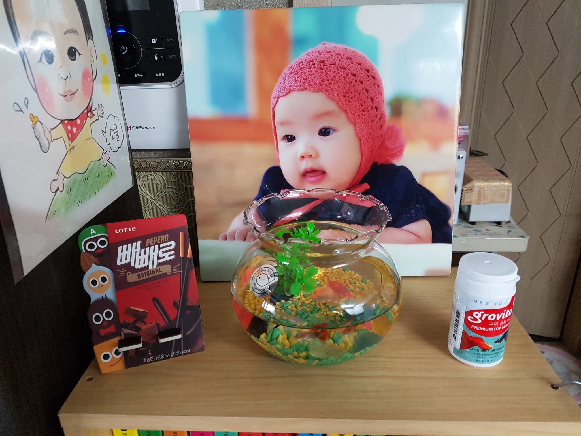 저희 집에 관상용 열대어인 구피키우기는 둘째아이가 서랍장 위에 미니어항으로 하기로 했답니다.