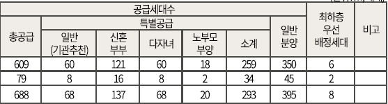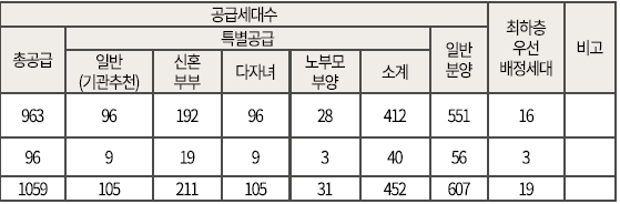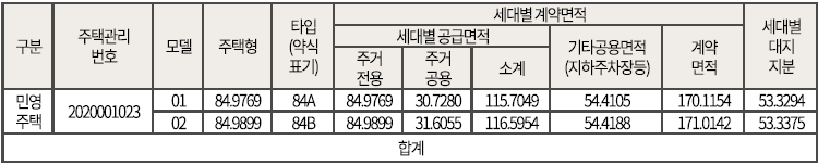 - 3블럭 주택형별 계약면적 및 공급세대수 안내