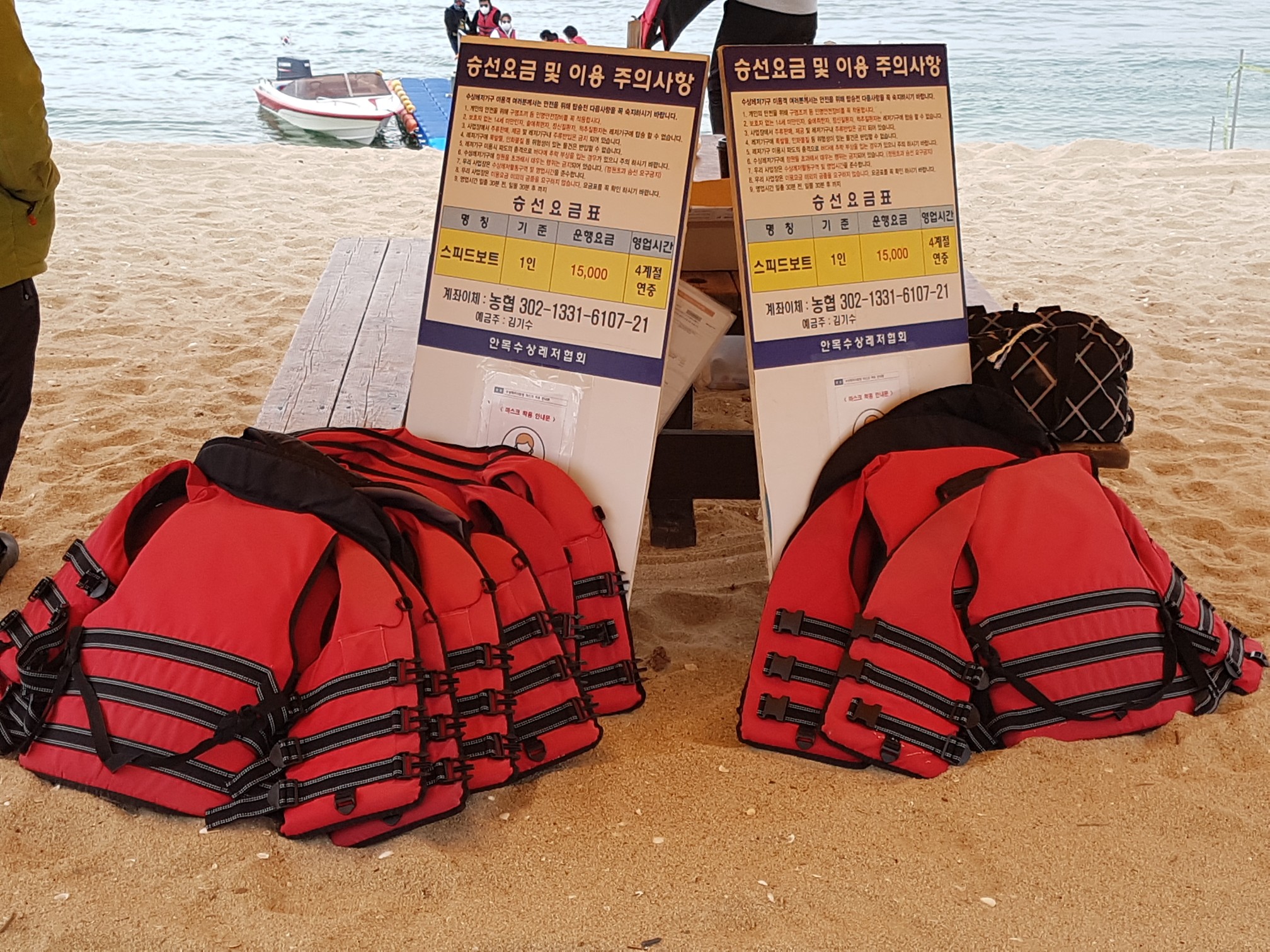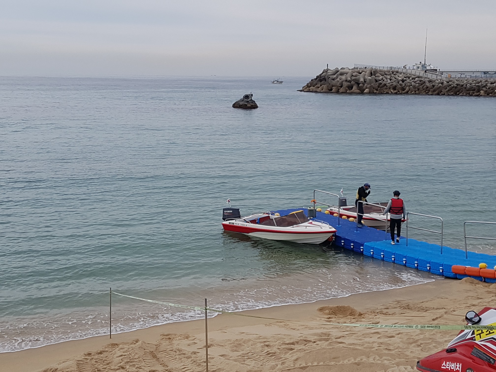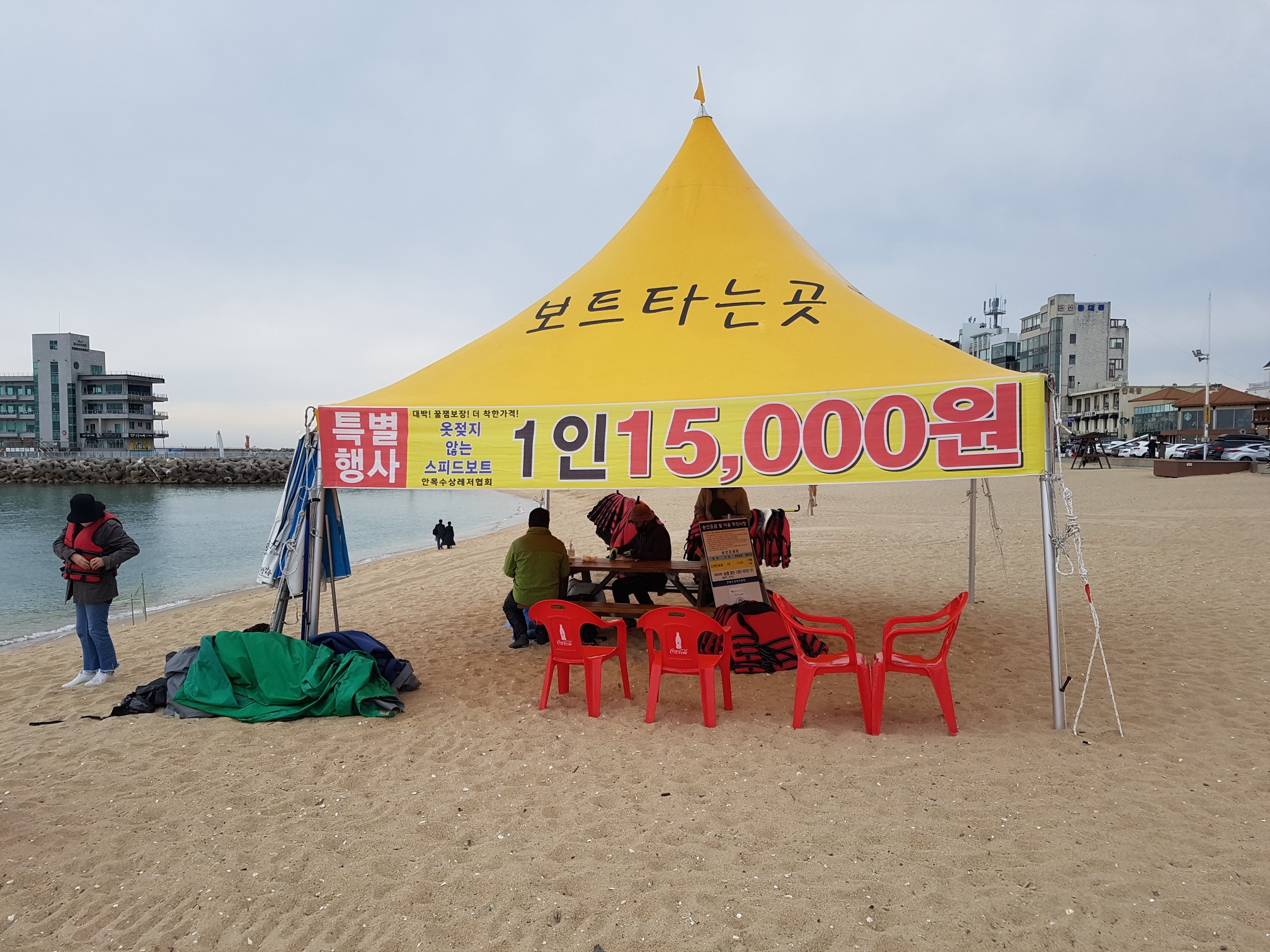 안목해변에 오면 수상스포츠도 즐길 수 있는데요. 바로 안목수상레저협회에서 주관하는 스피드보트를 단돈 1만5천원에 타실 수 있어요.