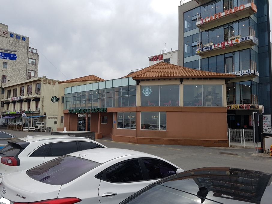 스타벅스커피도 2층 건물 전체를 쓰고 있는데요. 산토리니 커피숍보다는 규모가 적긴 하더라고요.
