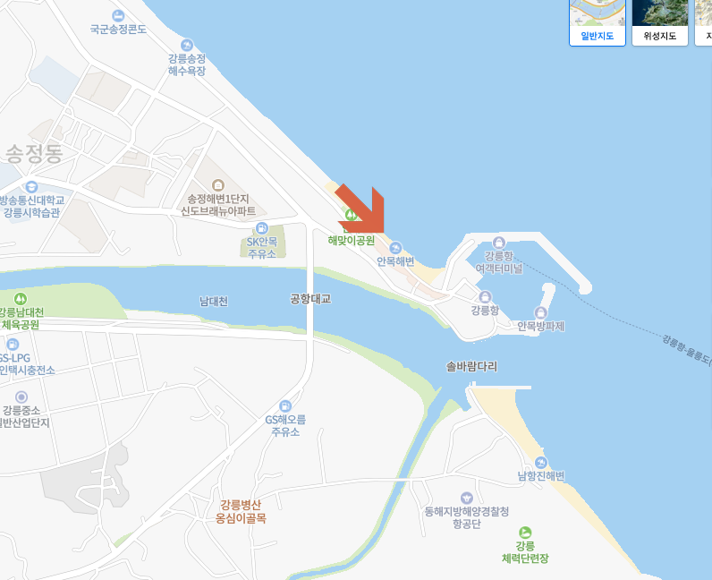 안목해변은 강릉시 창해로 14번길 20-1을 찍고 오시면 된답니다.