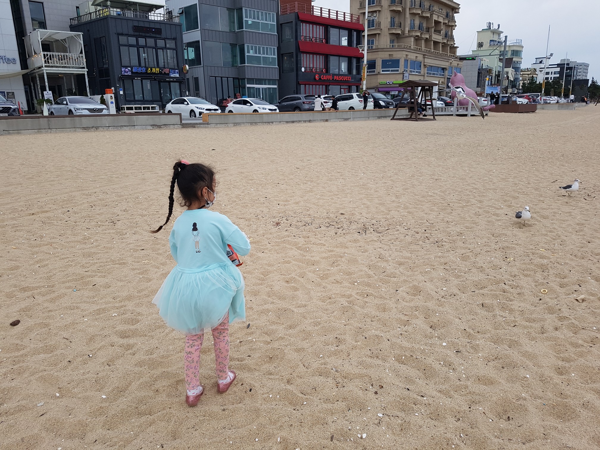 울 공주님 정동진 썬크루즈 에서도 붕어 먹이주기에 여념이 없더만, 강릉 견소동에 안목해변에 와서도 갈매기 먹이주기에 집중하는 분위기입니다.