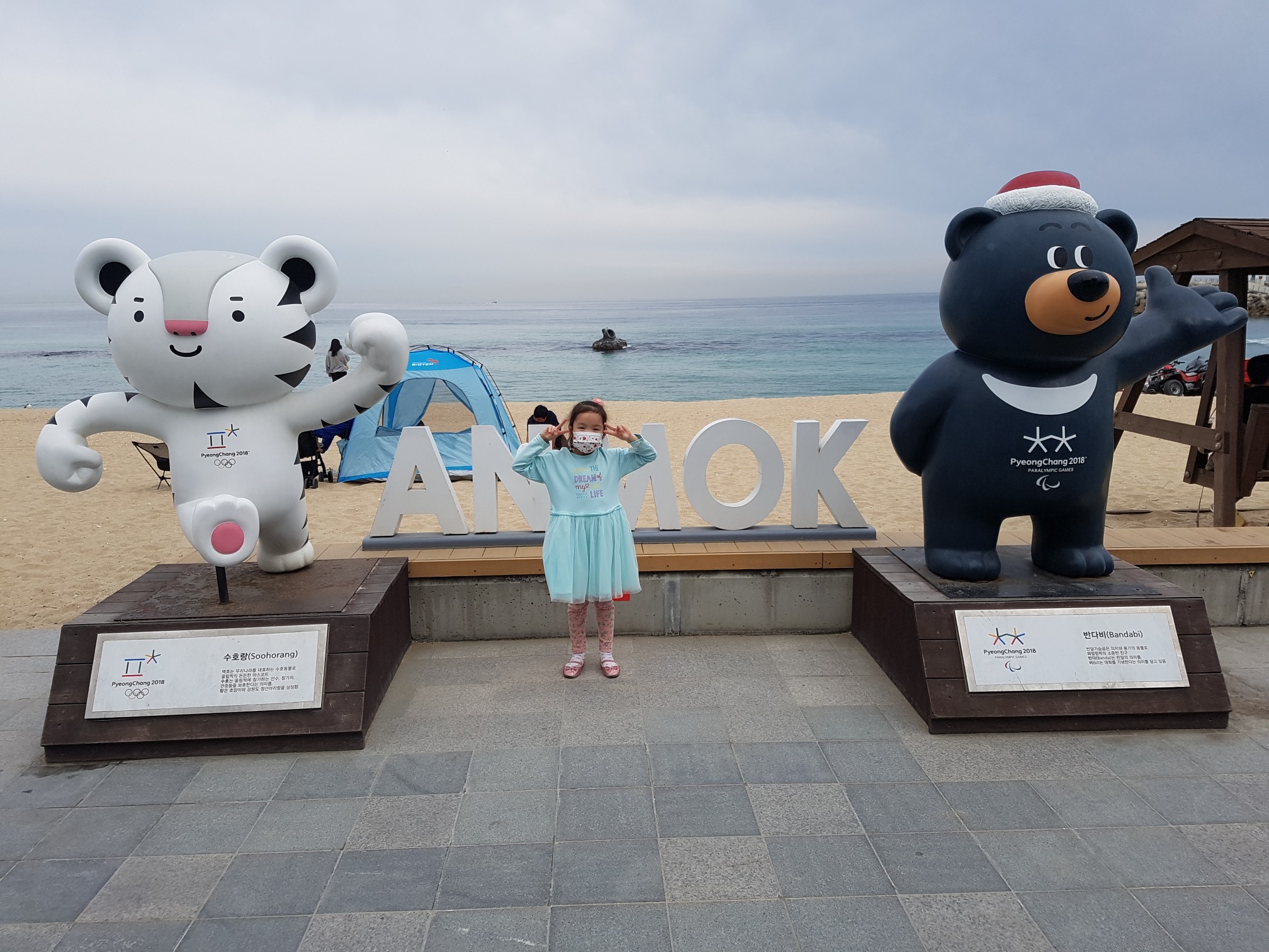평창동계올림픽의 추억이 있는 마스코트 앞에서도 한컷 찍었네요.^^