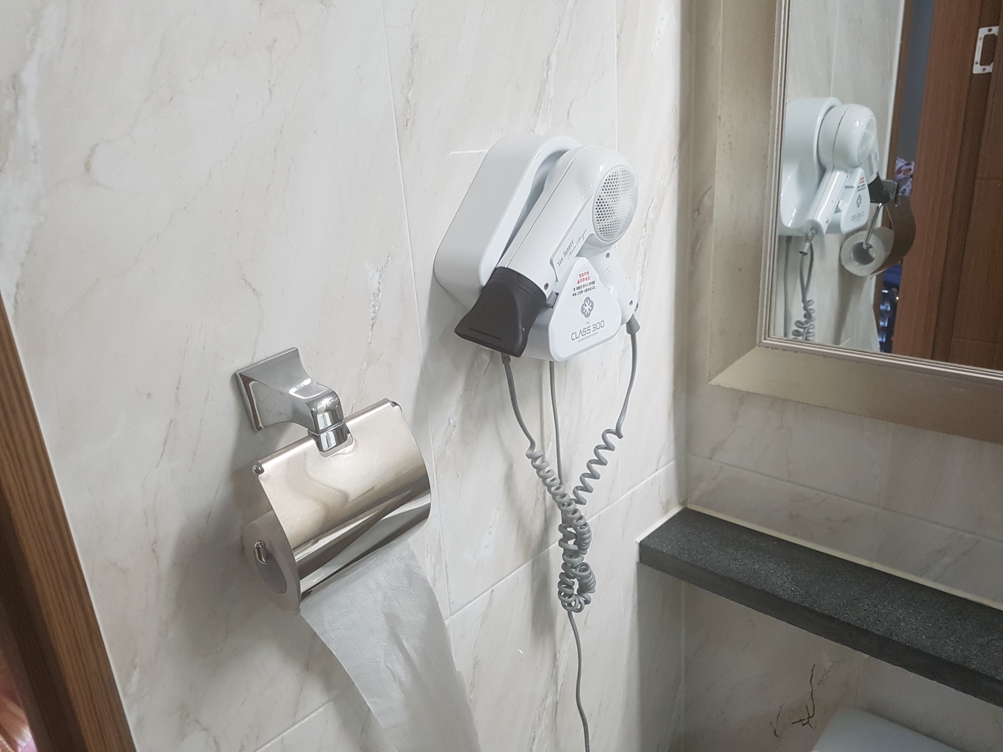 욕실은 샤워실과 양변기, 헤어드라이기, 세면대가 있고, 비누가 딸랑 어메니티로 구성돼 있었다.