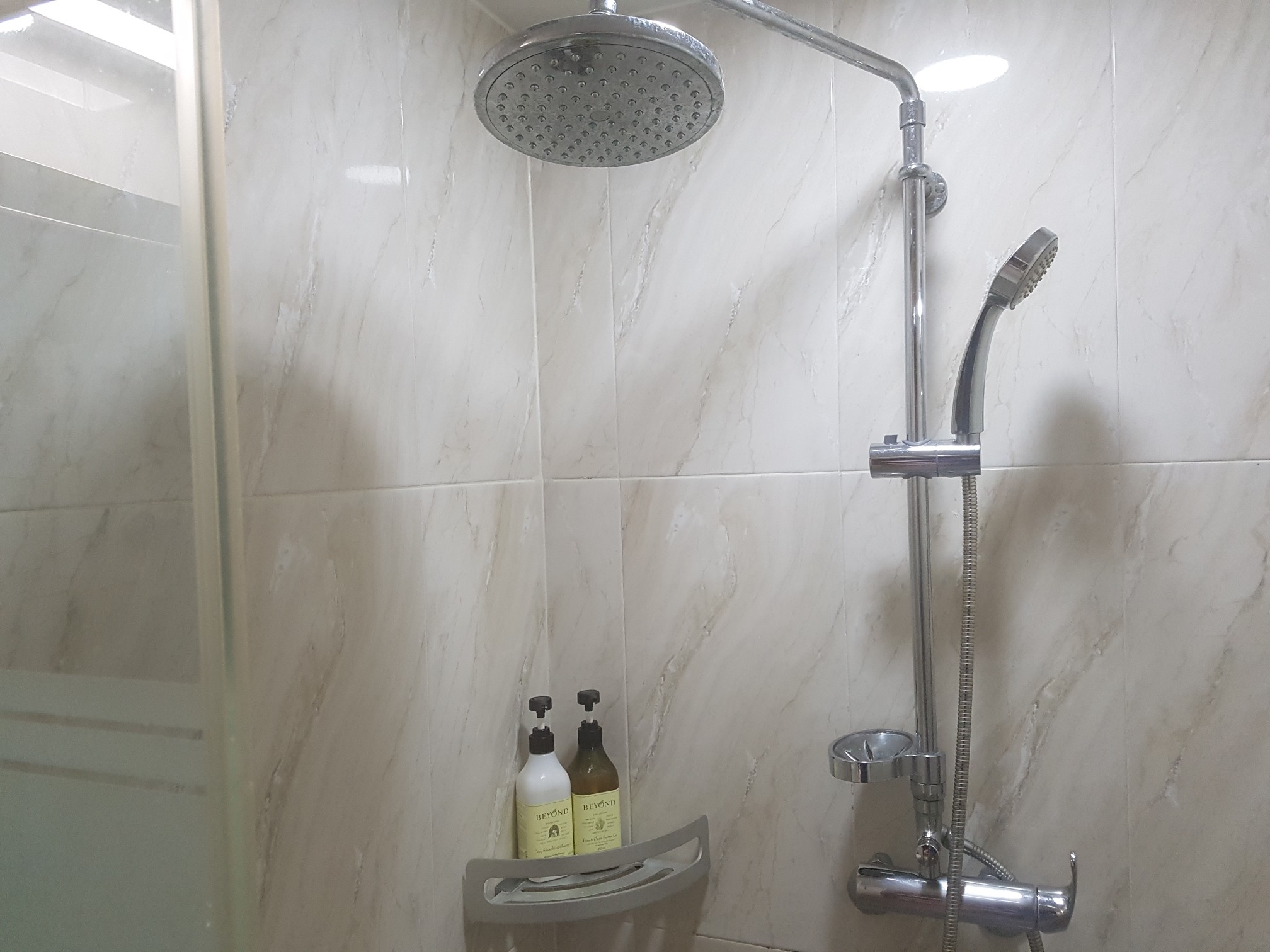다행이 따뜻한 물은 곧잘 나온다. 바디워시와 샴푸가 어메니티로 마련돼 있다.