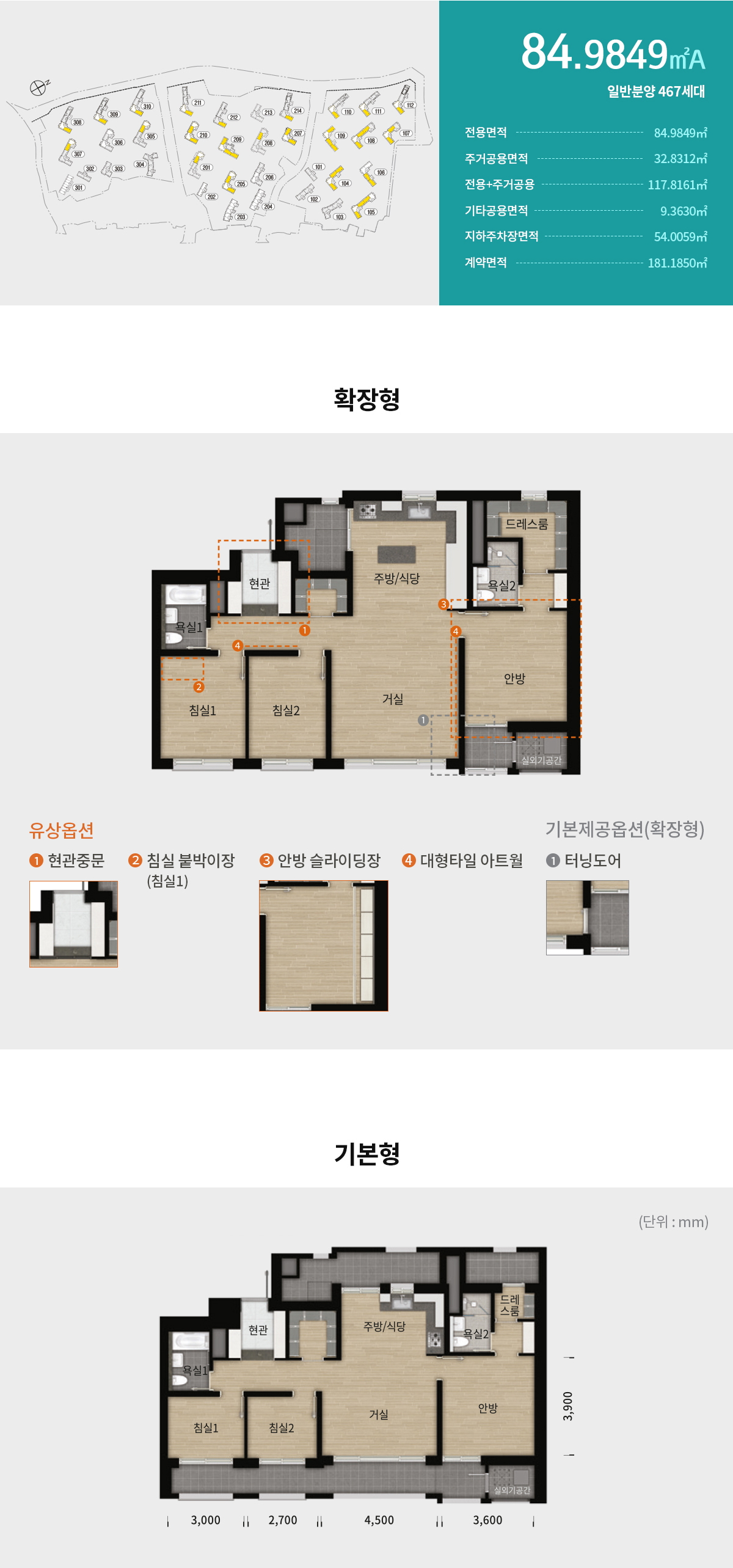 전용 85㎡ 타입별 평면도는 위의 링크를 클릭하면 보실 수 있다.